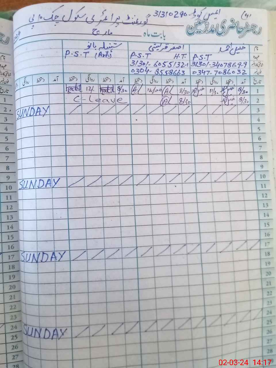| Name: Aa**** Ra**** Designation: (School Headmaster's/Headmistress's) PST Phone/Cell Number: 03**** |