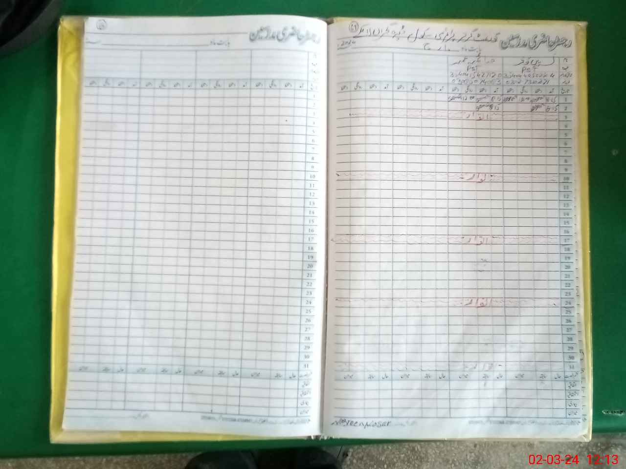 | CNIC | Full Name | Designation | R/C | Absence During Last Calender Month |
