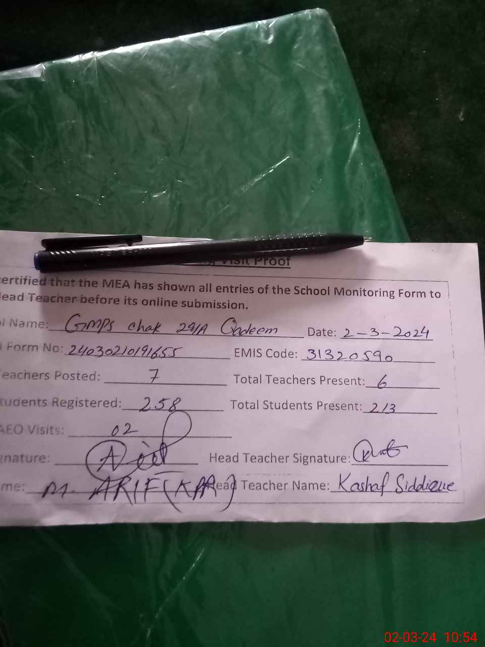 | EMIS Code: 31320590 | Name of School: GMPS CHAK NO.29 QADEEM | |||