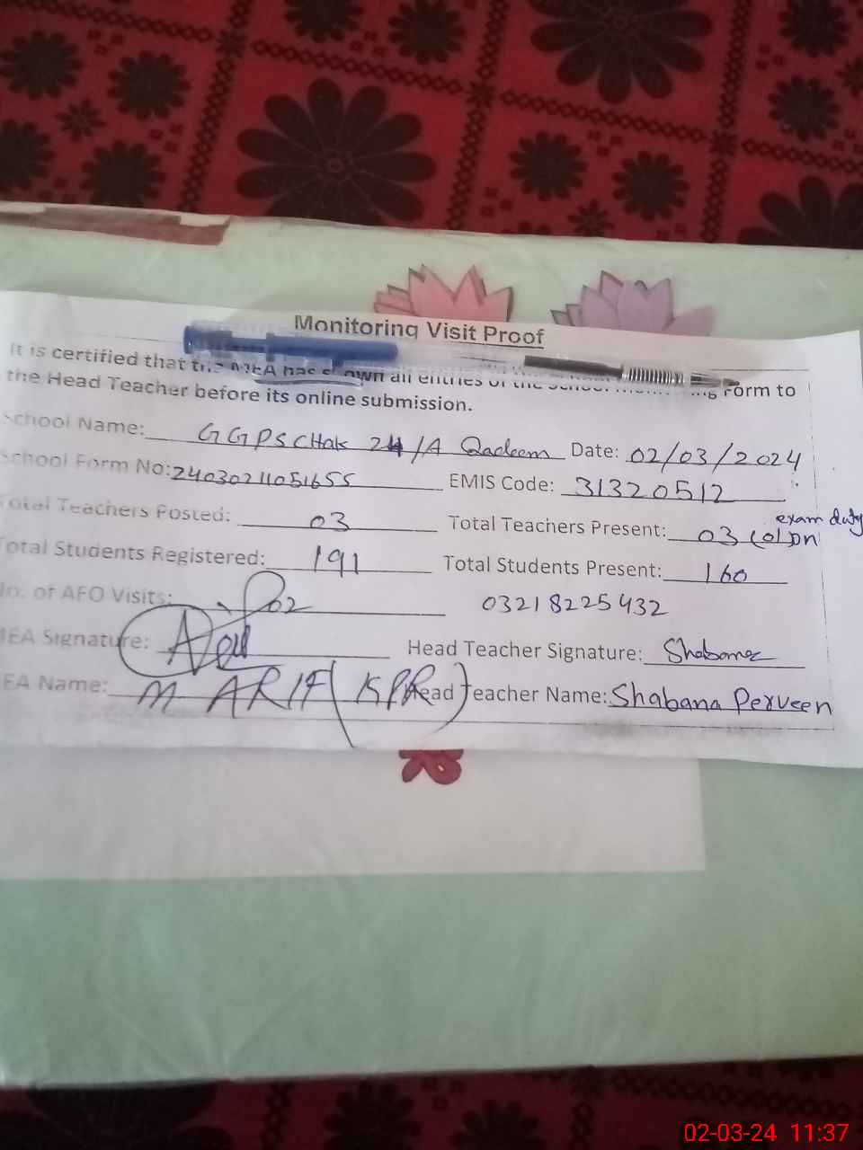 | EMIS Code: 31320512 | Name of School: GGPS CHAK NO.24/A | |||