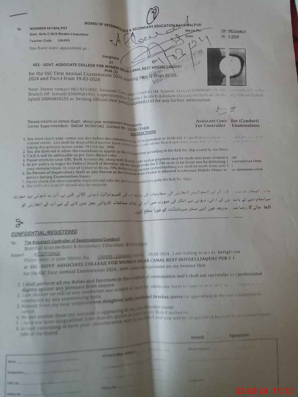 | Name: Sh**** Pa**** Designation: (School Headmaster's/Headmistress's) PST Phone/Cell Number: 03**** |