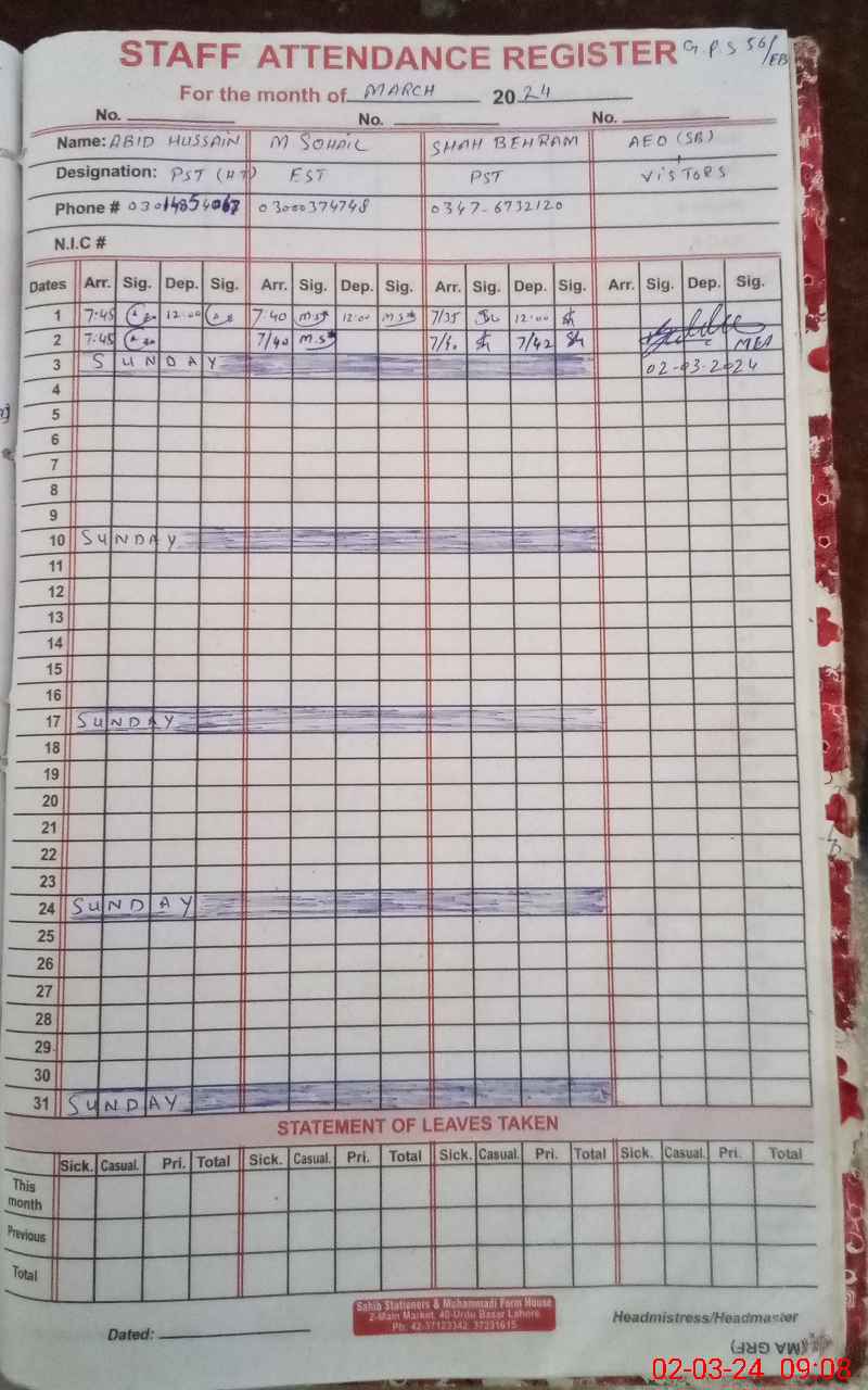 | Name: AB**** HU**** Designation: (School Headmaster's/Headmistress's) PST Phone/Cell Number: 03**** |