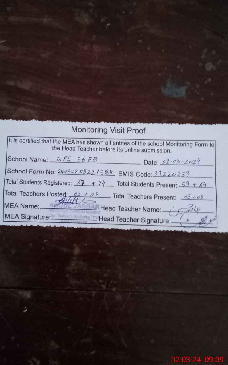| EMIS Code: 39220239 | Name of School: GPS 56 EB | |||