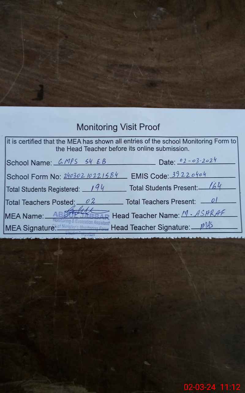 | EMIS Code: 39220404 | Name of School: GMPS 54 EB PO 50 EB | |||