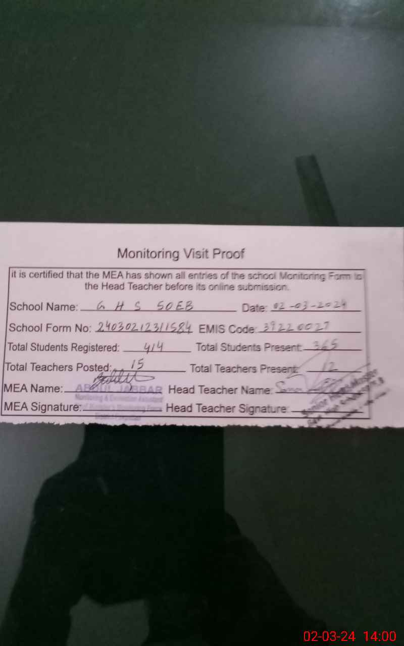 | EMIS Code: 39220027 | Name of School: GHS 50/EB | |||