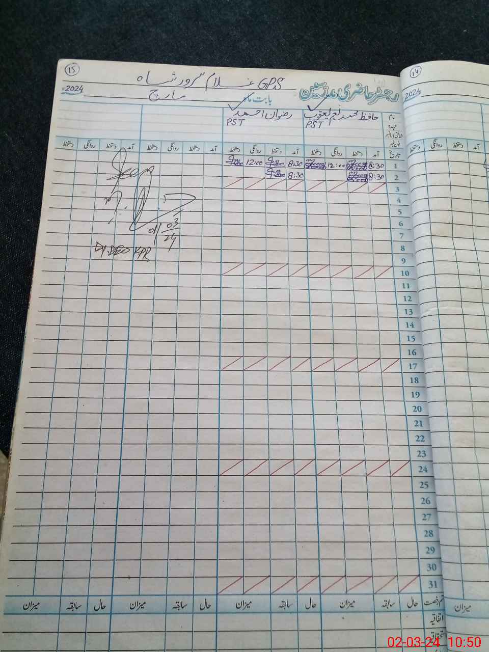 | CNIC | Full Name | Designation | R/C | Absence During Last Calender Month |