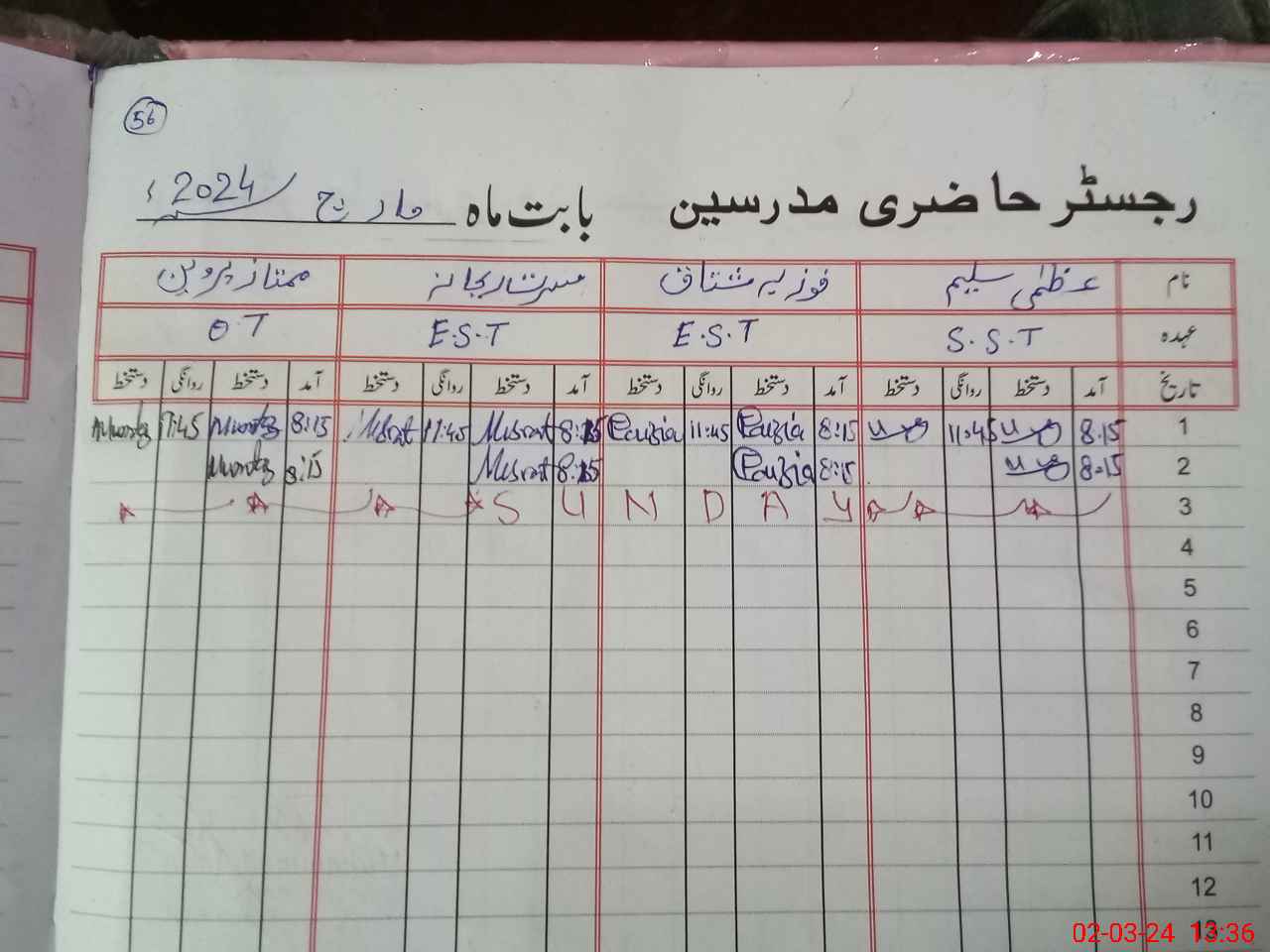 | Name: Uz**** Sa**** Designation: (School Headmaster's/Headmistress's) SST Phone/Cell Number: 03**** |