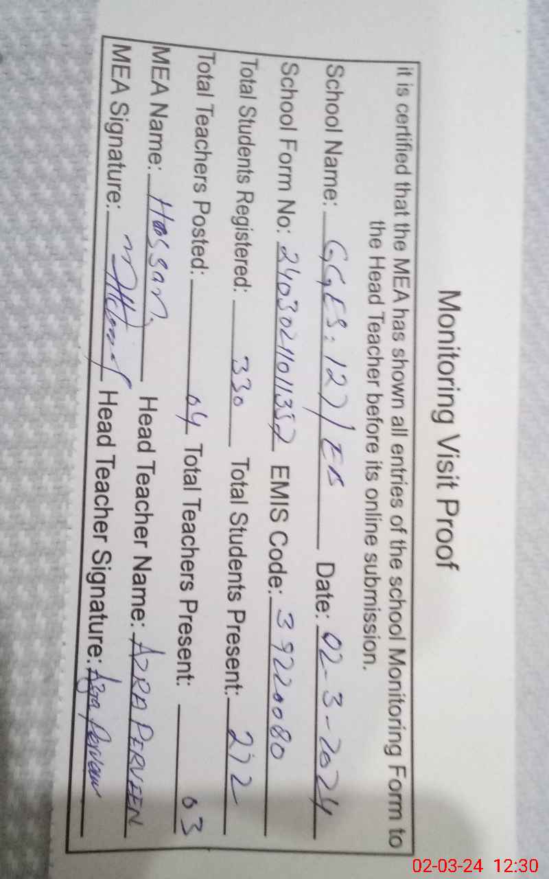 | Certified that this School was Inspected by the Undersigned MEA/DMO Today and the Information Stated Above is as Per Record. | |||||