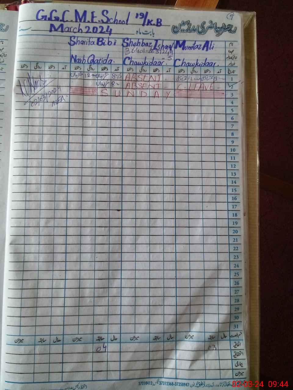 | 36**** | Sh**** Is**** | CHOWKIDAR | Contract | 0 | 0 | 29 | 0 | 0 | 0 | 0 | 0 | 0 | Absent (Un-Authorized) |