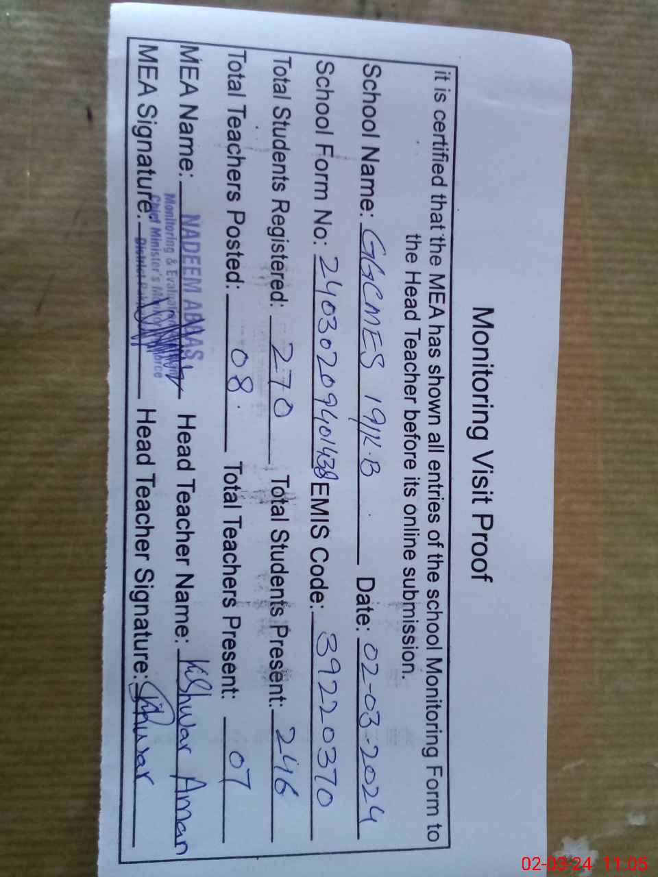 | EMIS Code: 39220370 | Name of School: GGCMES CHAK NO 19 KB | |||