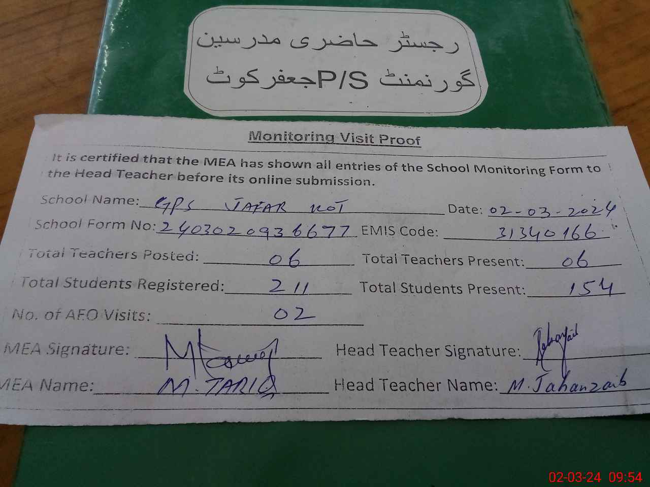 | EMIS Code: 31340166 | Name of School: GPS JAFAR KOT | |||