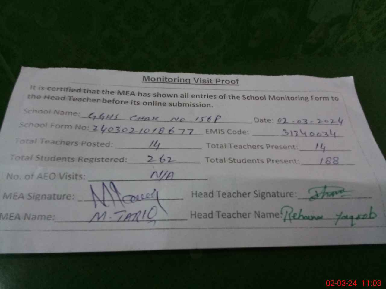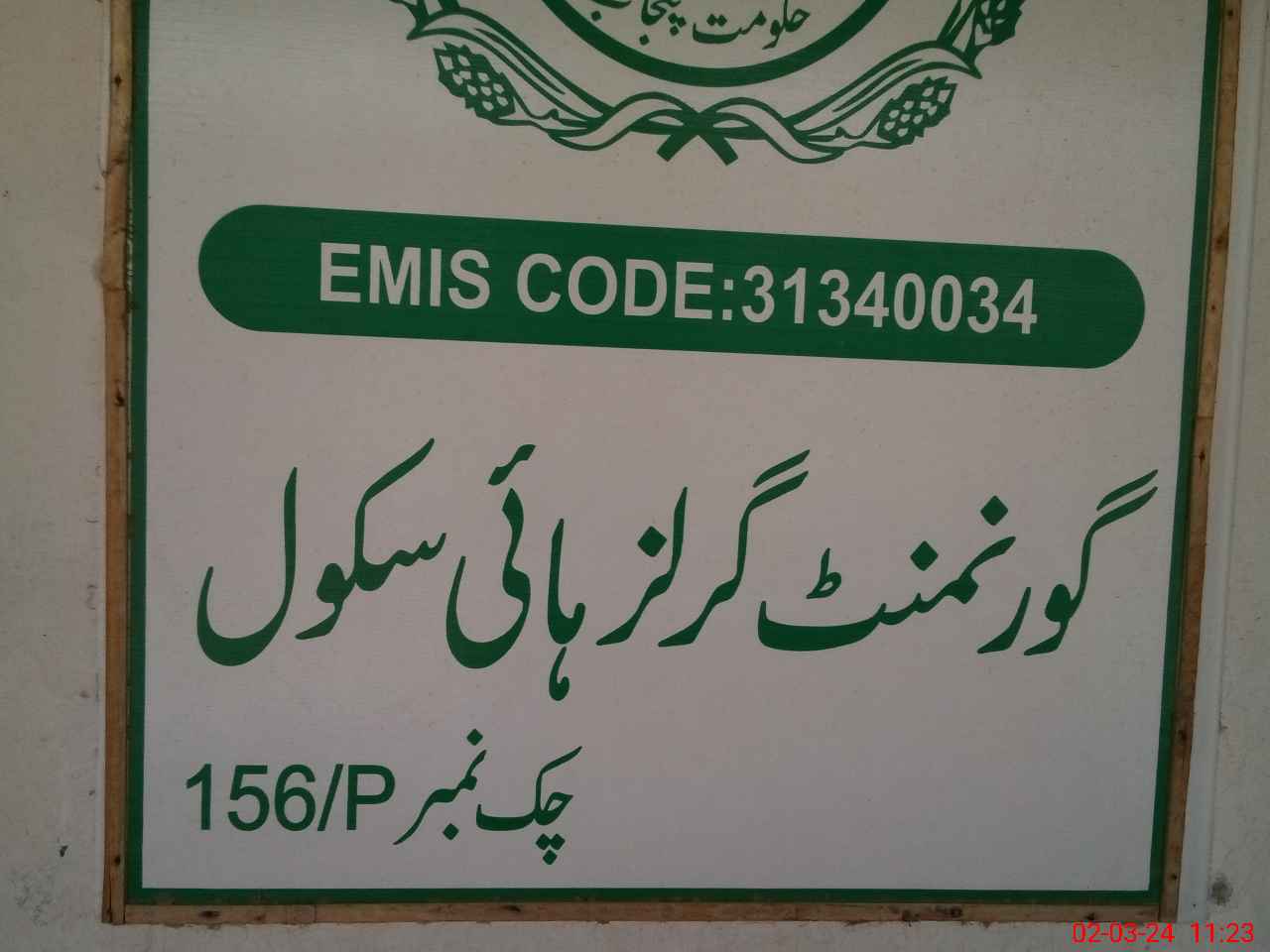 | EMIS Code: 31340034 | Name of School: GGHS CHAK NO. 156/P | |||
