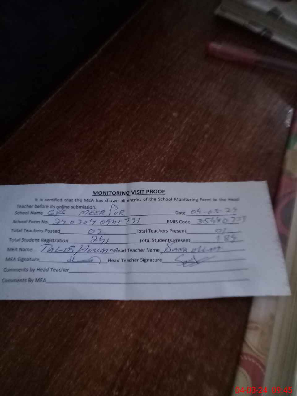 | EMIS Code: 35440739 | Name of School: GPS MEER PUR | |||