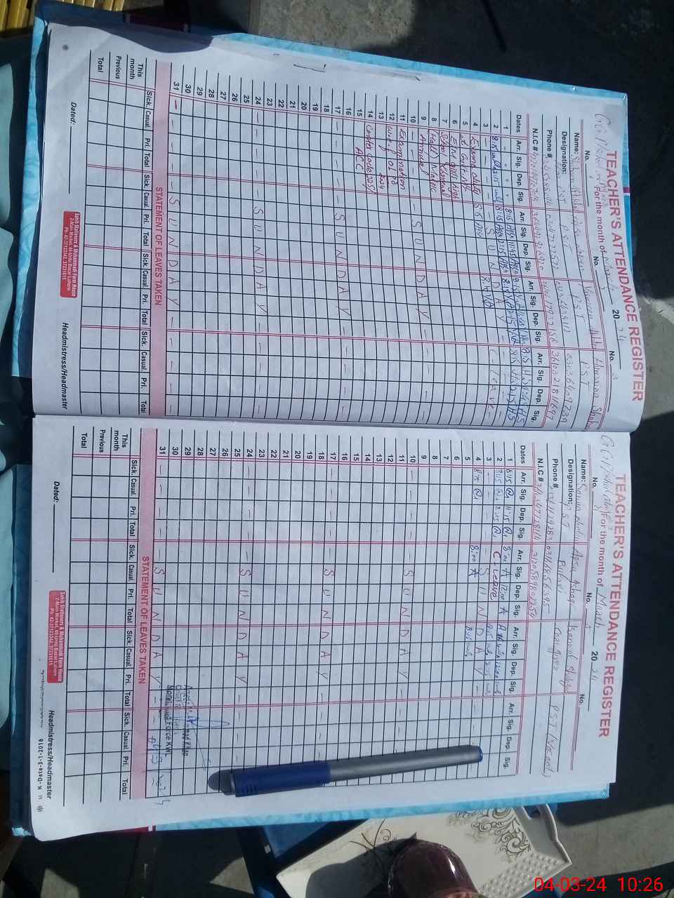| Name: Sh**** If**** Designation: (School Headmaster's/Headmistress's) PST Phone/Cell Number: 03**** |