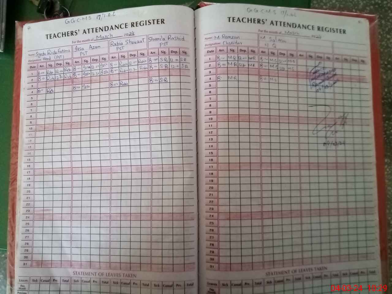 | No. of Students Present - Female | 4 | 0 | 35 | 20 | 35 | 22 | 15 | 28 | 159 | |||||||
