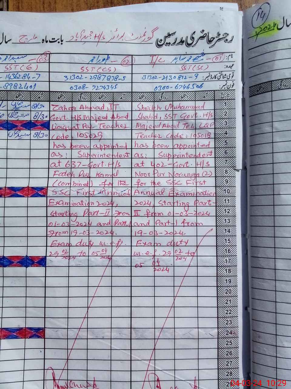 | Name: SH**** MU**** SH**** Designation: (School Headmaster's/Headmistress's) SST (INCHARGE HEADMASTER) Phone/Cell Number: 03**** |