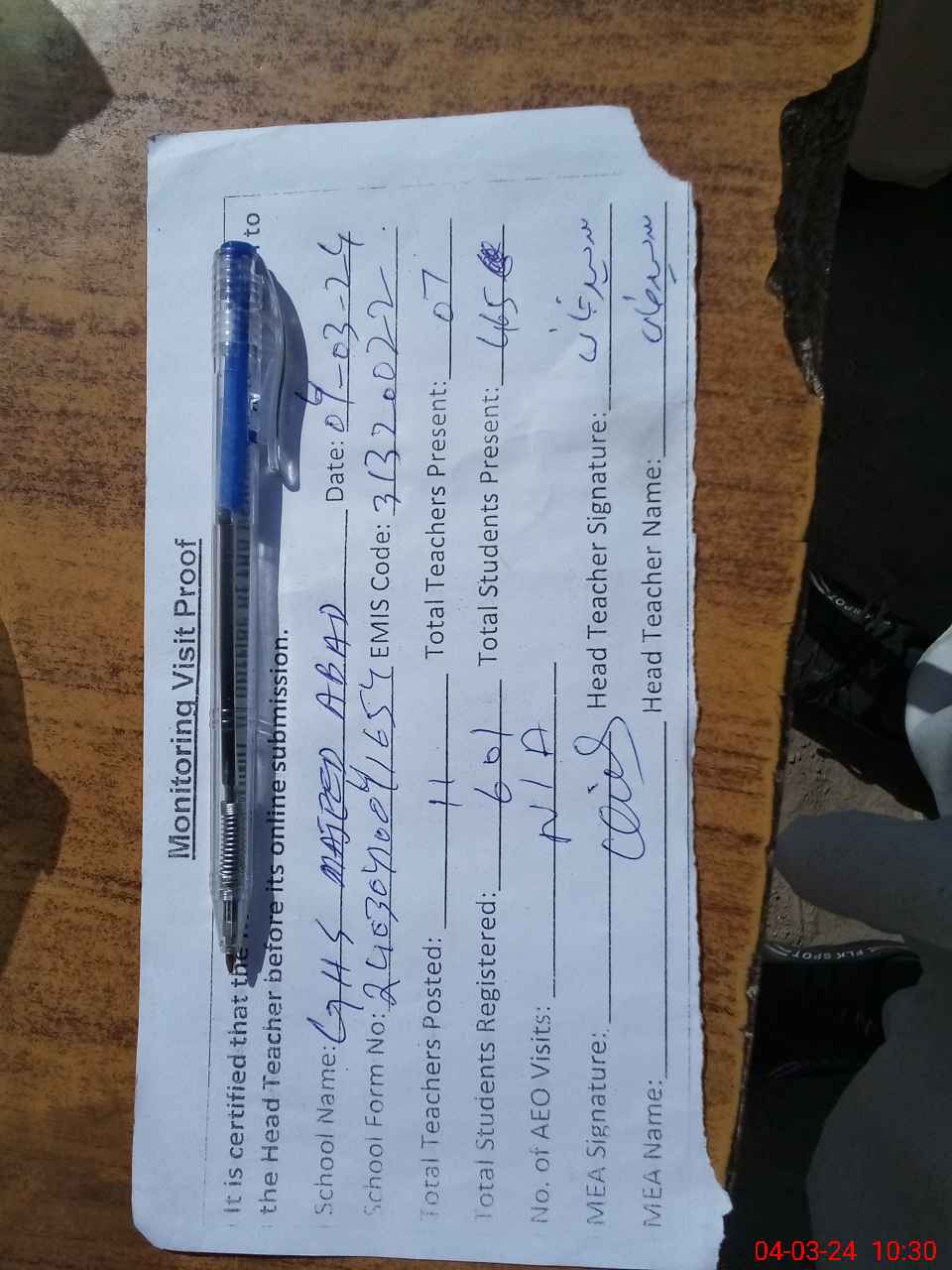 | EMIS Code: 31320022 | Name of School: GHS MAJEED ABAD | |||