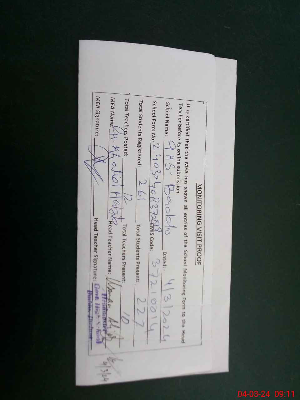 | Certified that this School was Inspected by the Undersigned MEA/DMO Today and the Information Stated Above is as Per Record. | |||||