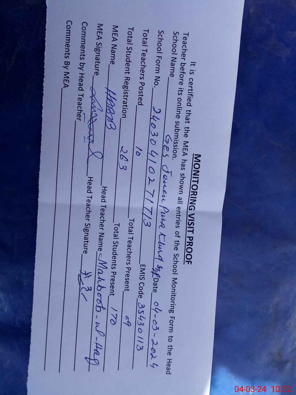 | EMIS Code: 35430113 | Name of School: GES JEVAN PURA KHURD | |||