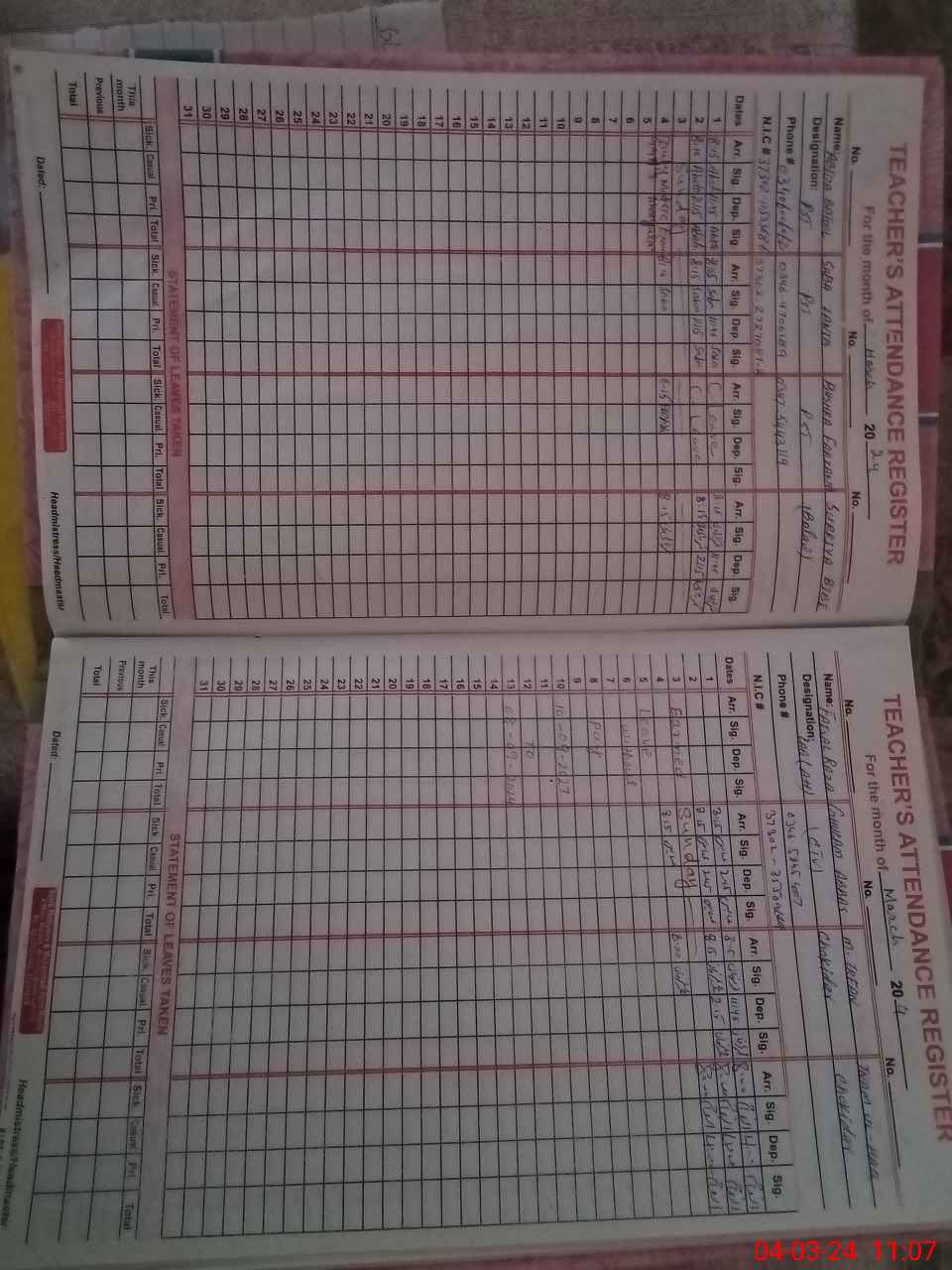 | 37**** | Ab**** Ba**** | 1 | 1 | 2 | 0 | 0 | 0 | 0 | 0 | 0 | 1 | Absent (Un-Authorized) | |