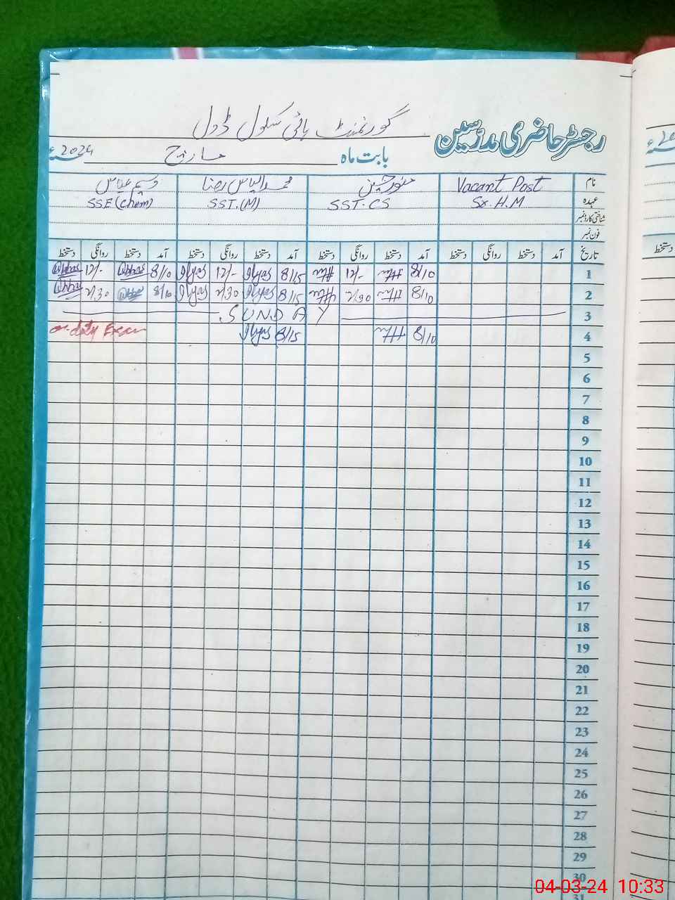 | 33**** | Gh**** Kh**** | 3 | 1 | 0 | 0 | 0 | 0 | 0 | 0 | 0 | 0 | 0 | Exam Duty |