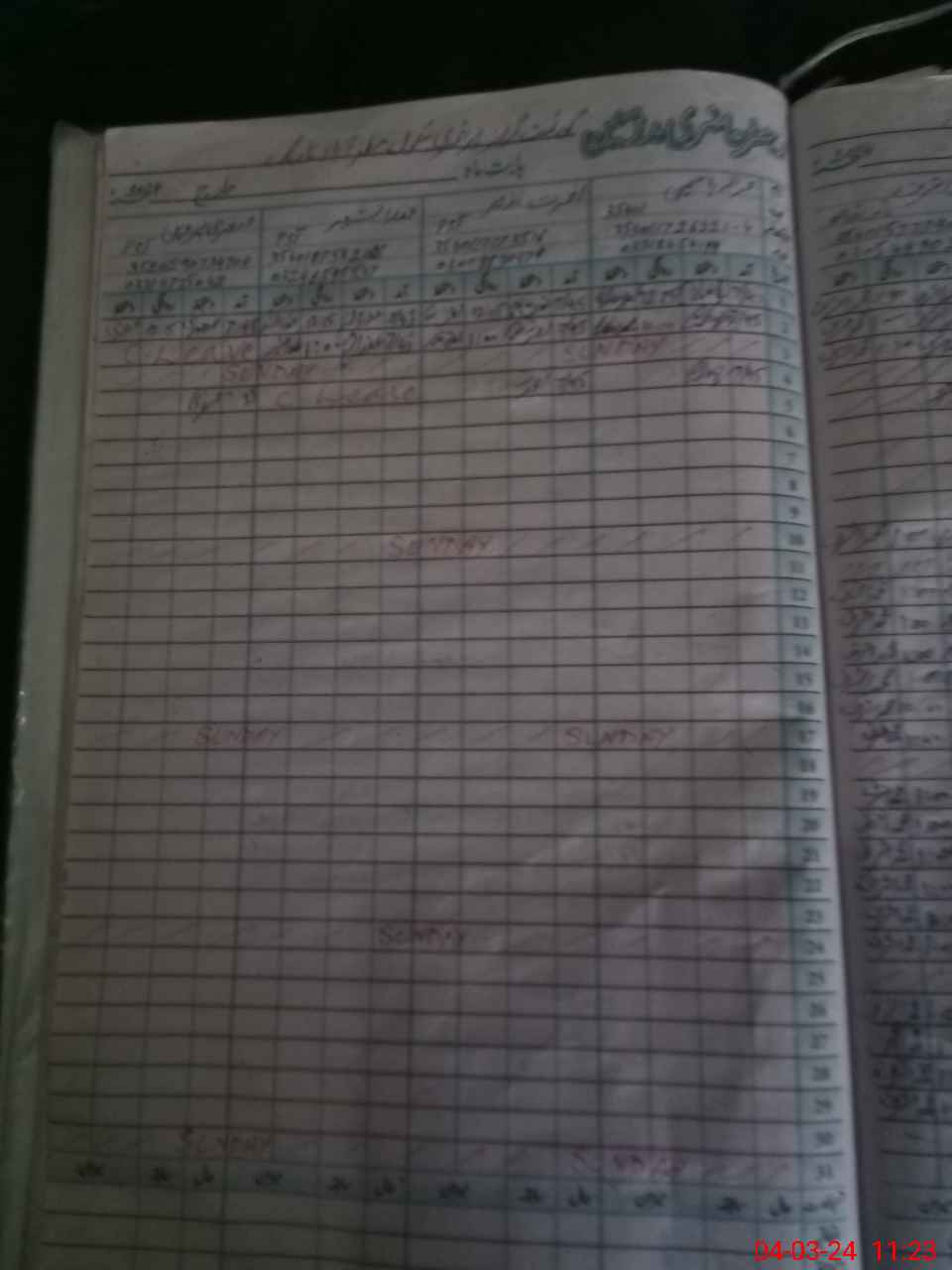 | CNIC | Full Name | Designation | R/C | Absence During Last Calender Month |
