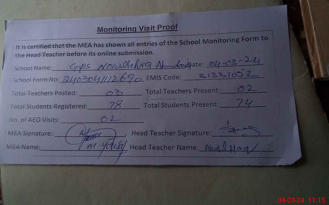 | EMIS Code: 31331052 | Name of School: GPS NOSHAHRA AHMED ANIA P/O DARI AZIM KHAN | |||