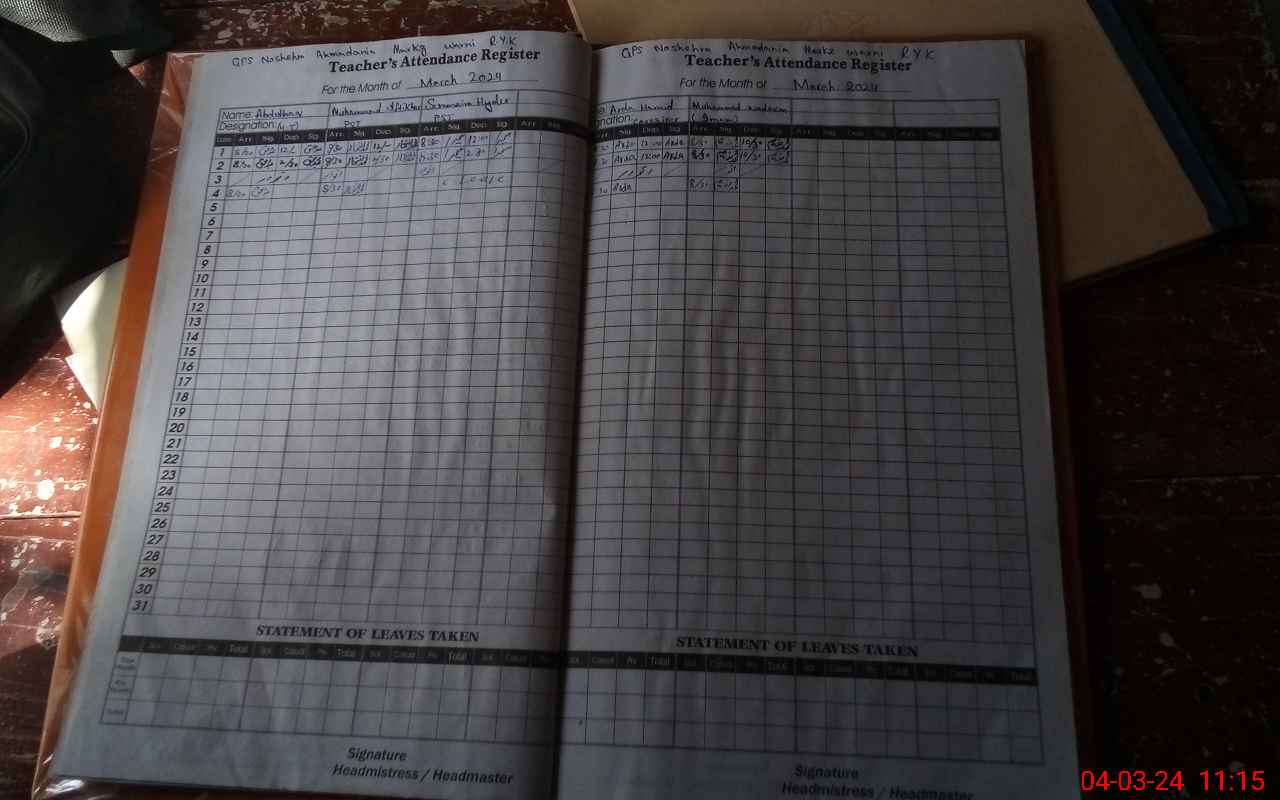 | Attendance Register | Head Teacher | MEA with School | Visit Proof |