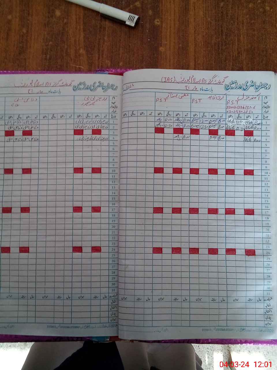 | CNIC | Full Name | Designation | R/C | Absence During Last Calender Month |