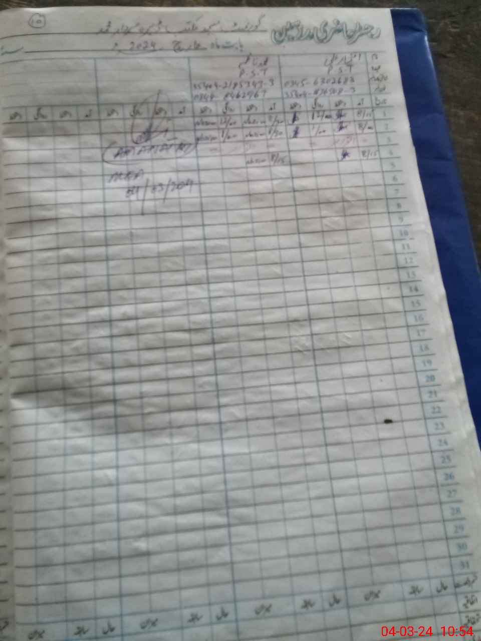 | CNIC | Full Name | Designation | R/C | Absence During Last Calender Month |