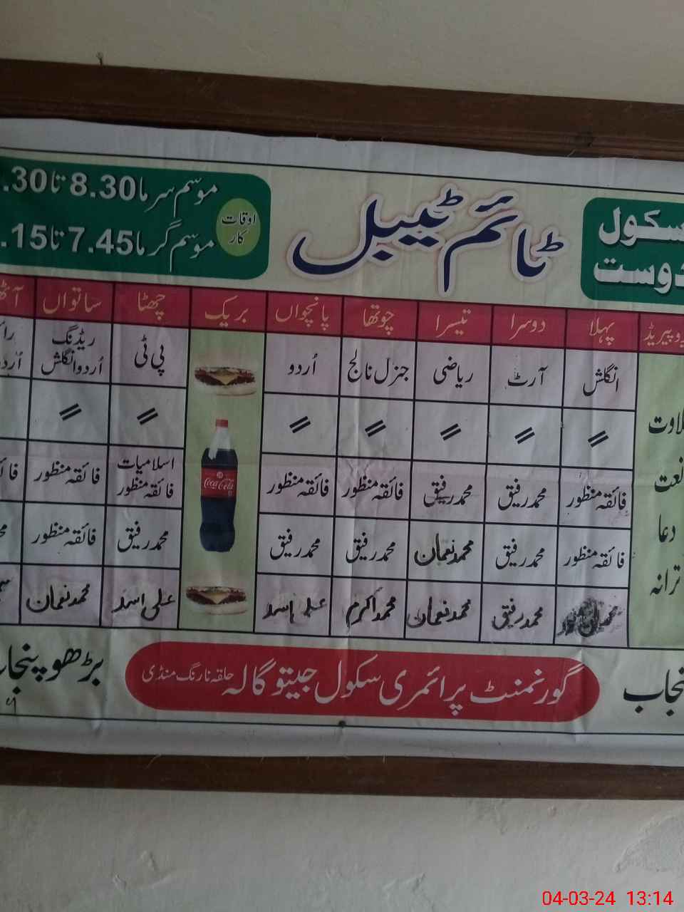 | District: SHEIKHUPURA | Tehsil: MURIDKE | Markaz: NANRANG CITY-MALE | Level: Primary | |