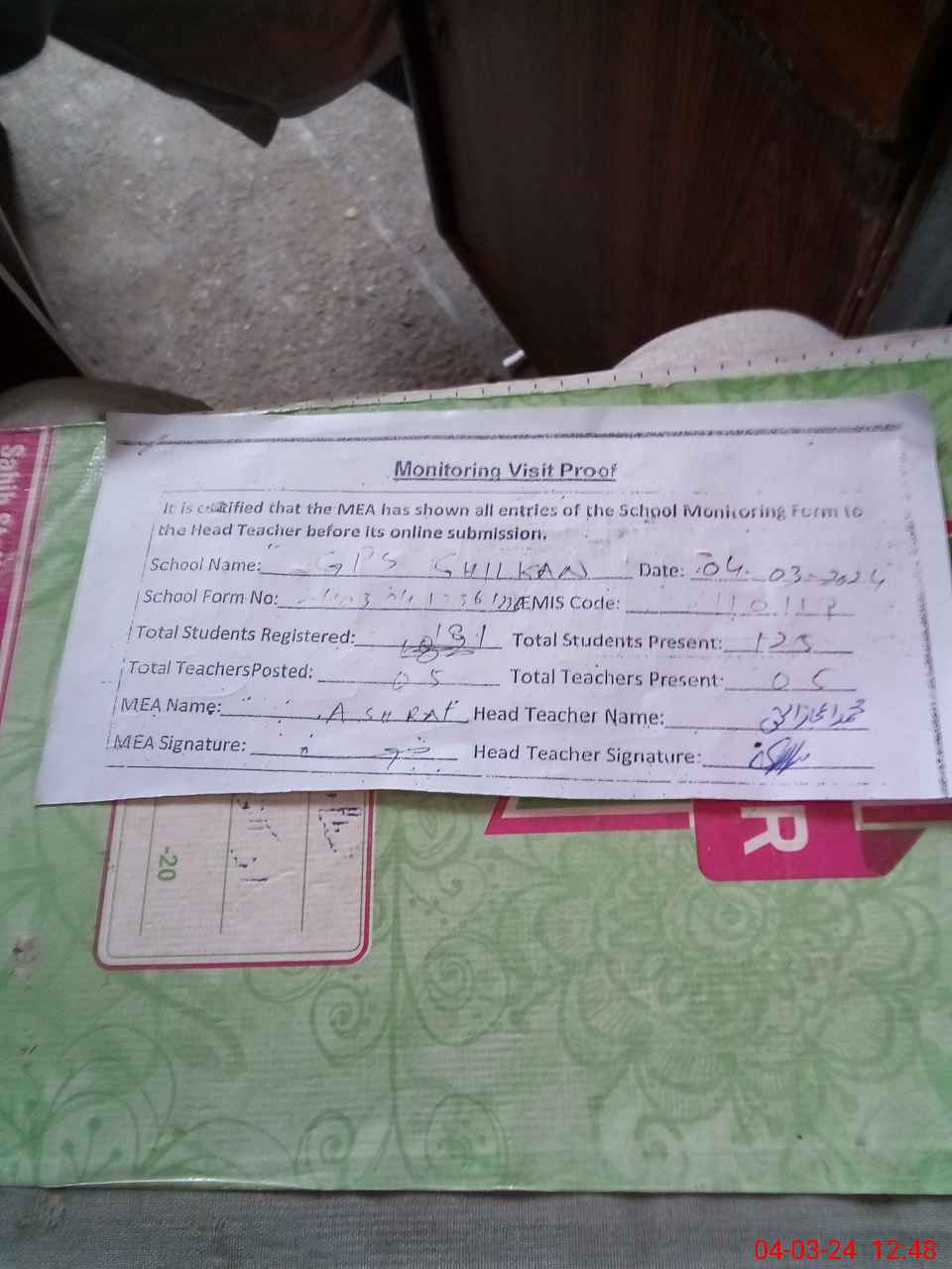 | EMIS Code: 38110119 | Name of School: GPS GHILKAN | |||