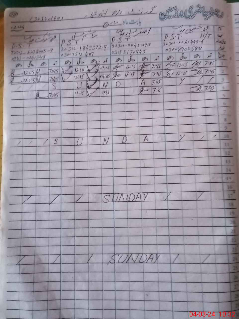 | CNIC | Full Name | Designation | R/C | Absence During Last Calender Month |