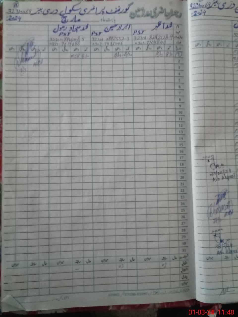 | Name: MU**** AZ**** Designation: (School Headmaster's/Headmistress's) PST Phone/Cell Number: 03**** |