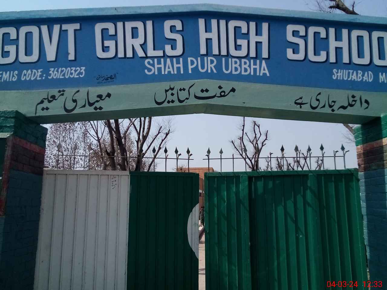 | EMIS Code: 36120323 | Name of School: GGHS SHAH PUR UBBHA SHUJABAD | |||
