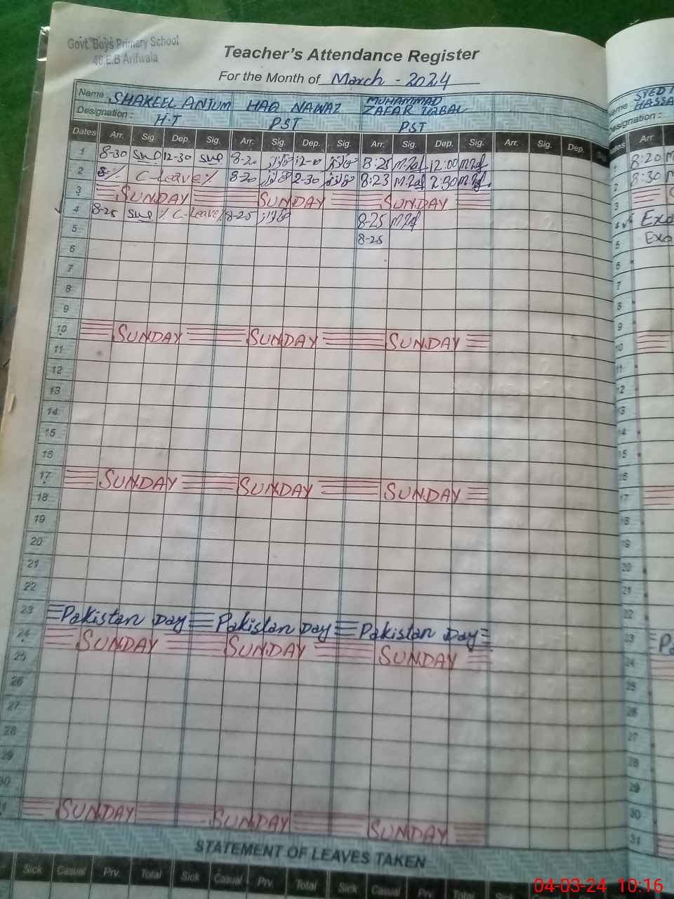 | Name: MU**** ZA**** IQ**** Designation: (School Headmaster's/Headmistress's) PST Phone/Cell Number: 03**** |