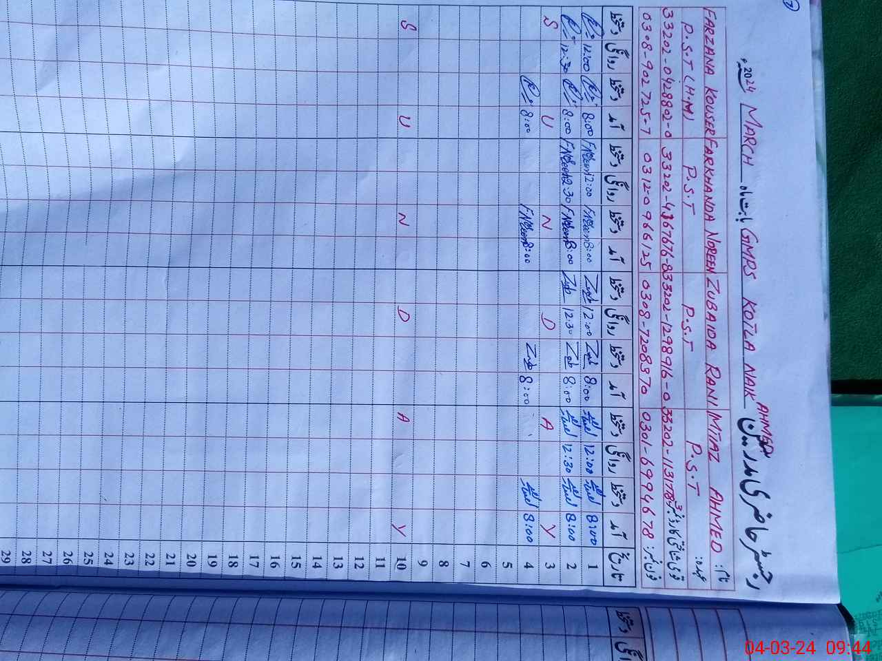 | Name: MU**** MU**** Designation: (School Headmaster's/Headmistress's) PST Phone/Cell Number: 03**** |