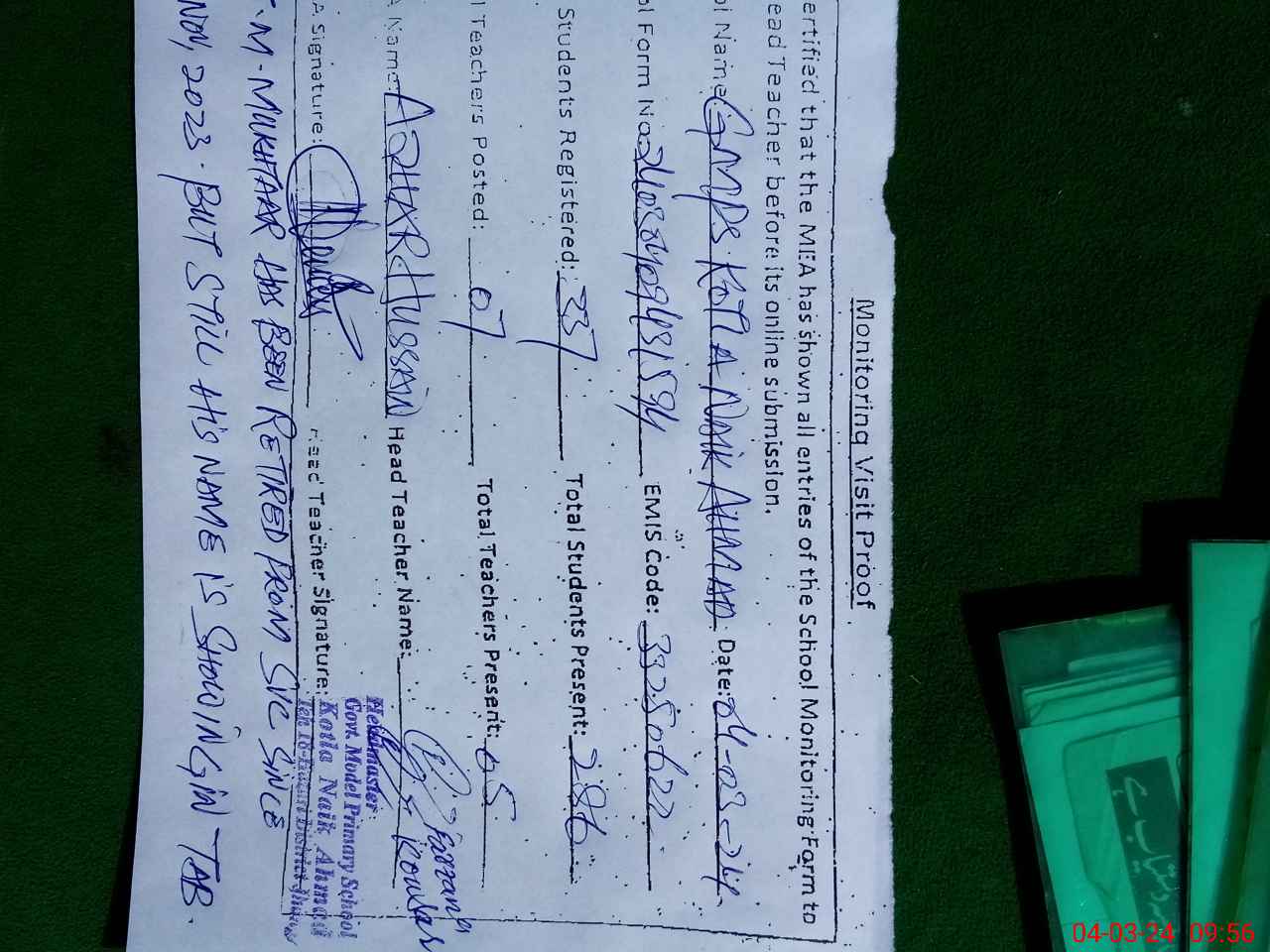 | EMIS Code: 33250622 | Name of School: GMPS KOTLA NAIK AHMAD | |||