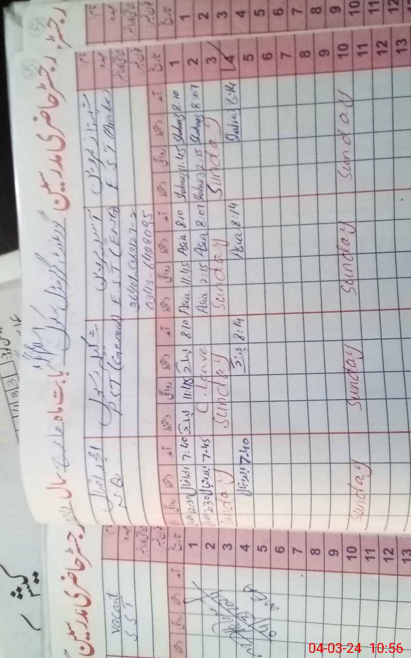 | Name: AS**** PE**** Designation: (School Headmaster's/Headmistress's) Est (ENG) Phone/Cell Number: 03**** |