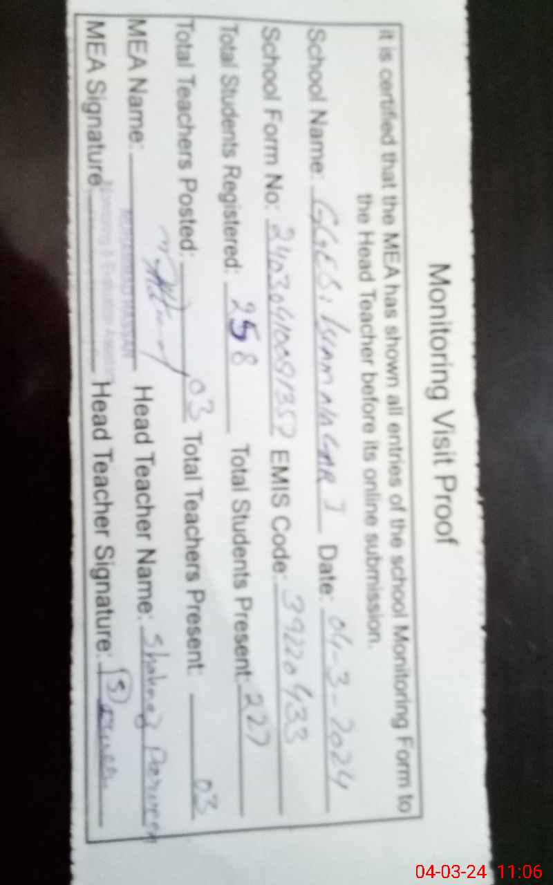 | EMIS Code: 39220433 | Name of School: GGES ISLAM NAGAR NO 1 | |||