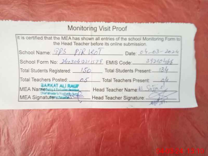 | EMIS Code: 39210466 | Name of School: GPS PIR KOT PAKPATTAN | |||
