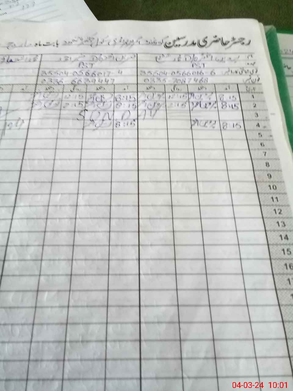 | Name: NA**** AK**** Designation: (School Headmaster's/Headmistress's) PST Phone/Cell Number: 03**** |