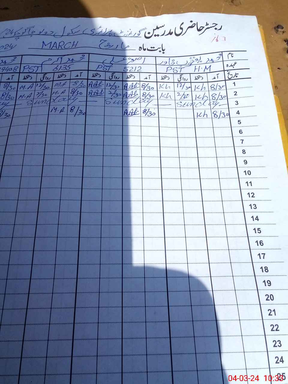 | Name: MU**** AH**** NA**** Designation: (School Headmaster's/Headmistress's) PST Phone/Cell Number: 30**** |