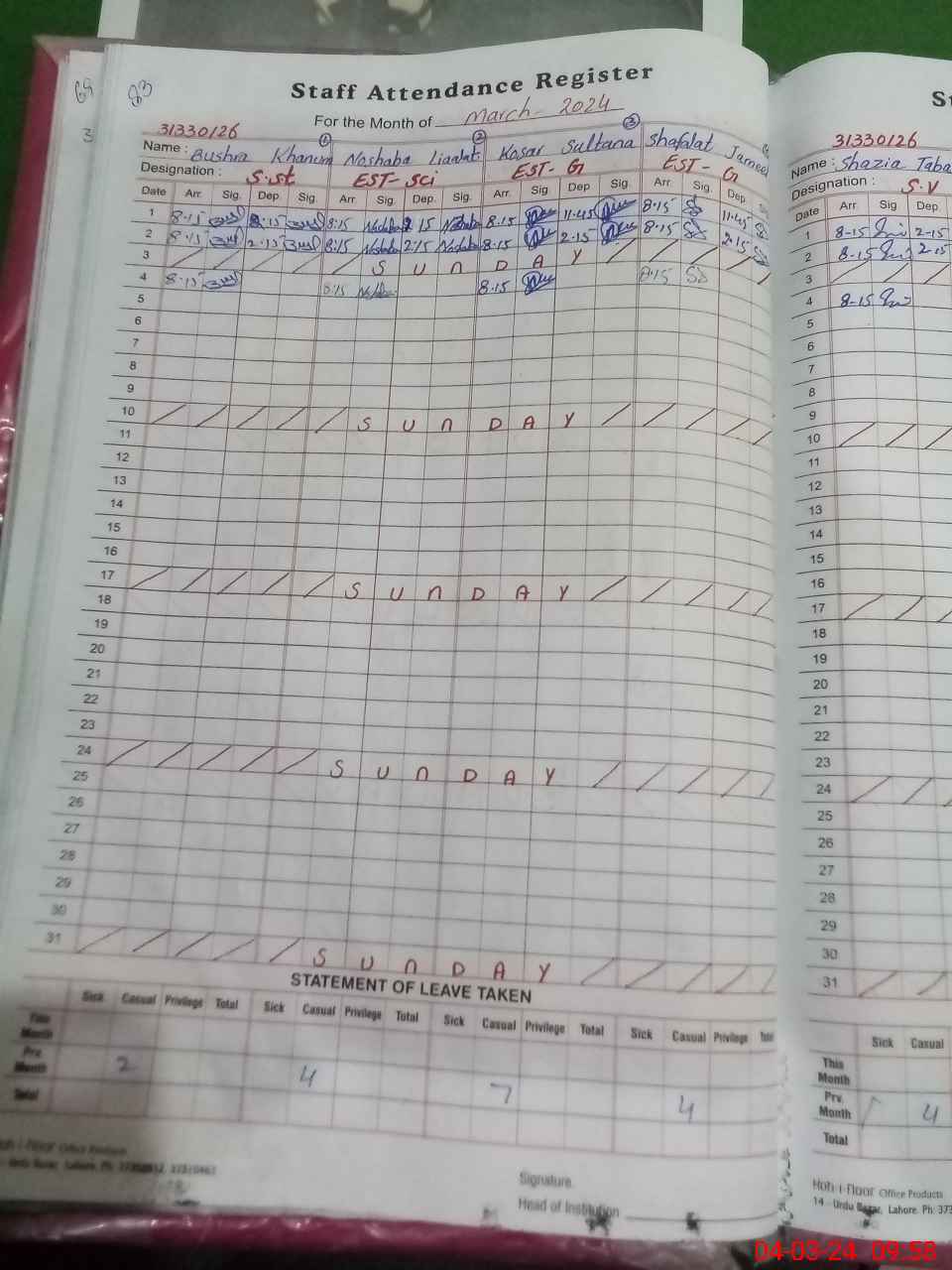 | Leave | Duty | Absent | Maternity | Medical | Ex- Pak |