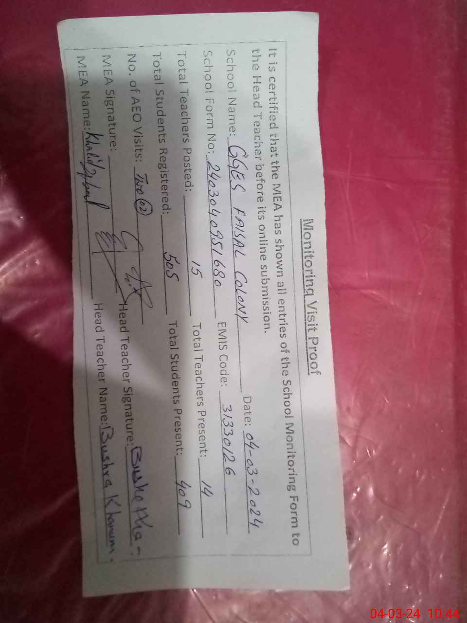 | EMIS Code: 31330126 | Name of School: GGES FAISAL COLONY | |||