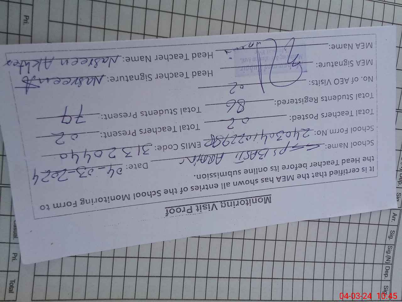 | Name: Na**** Ak**** Designation: (School Headmaster's/Headmistress's) PST Phone/Cell Number: 03**** |