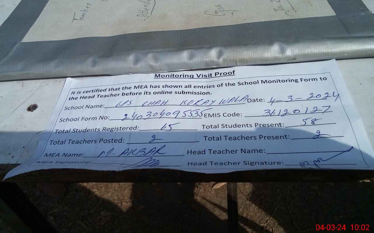 | EMIS Code: 36120127 | Name of School: GPS CHAH KORAY WALA | |||