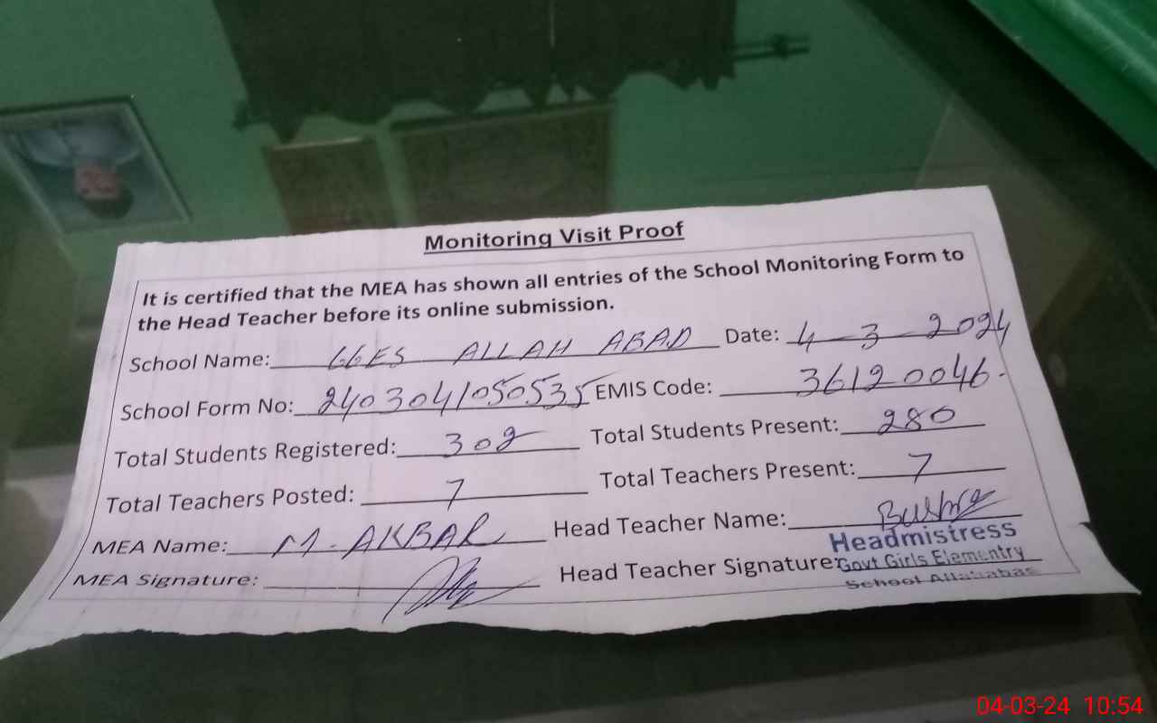 | EMIS Code: 36120046 | Name of School: GGES ALLAH ABAD | |||