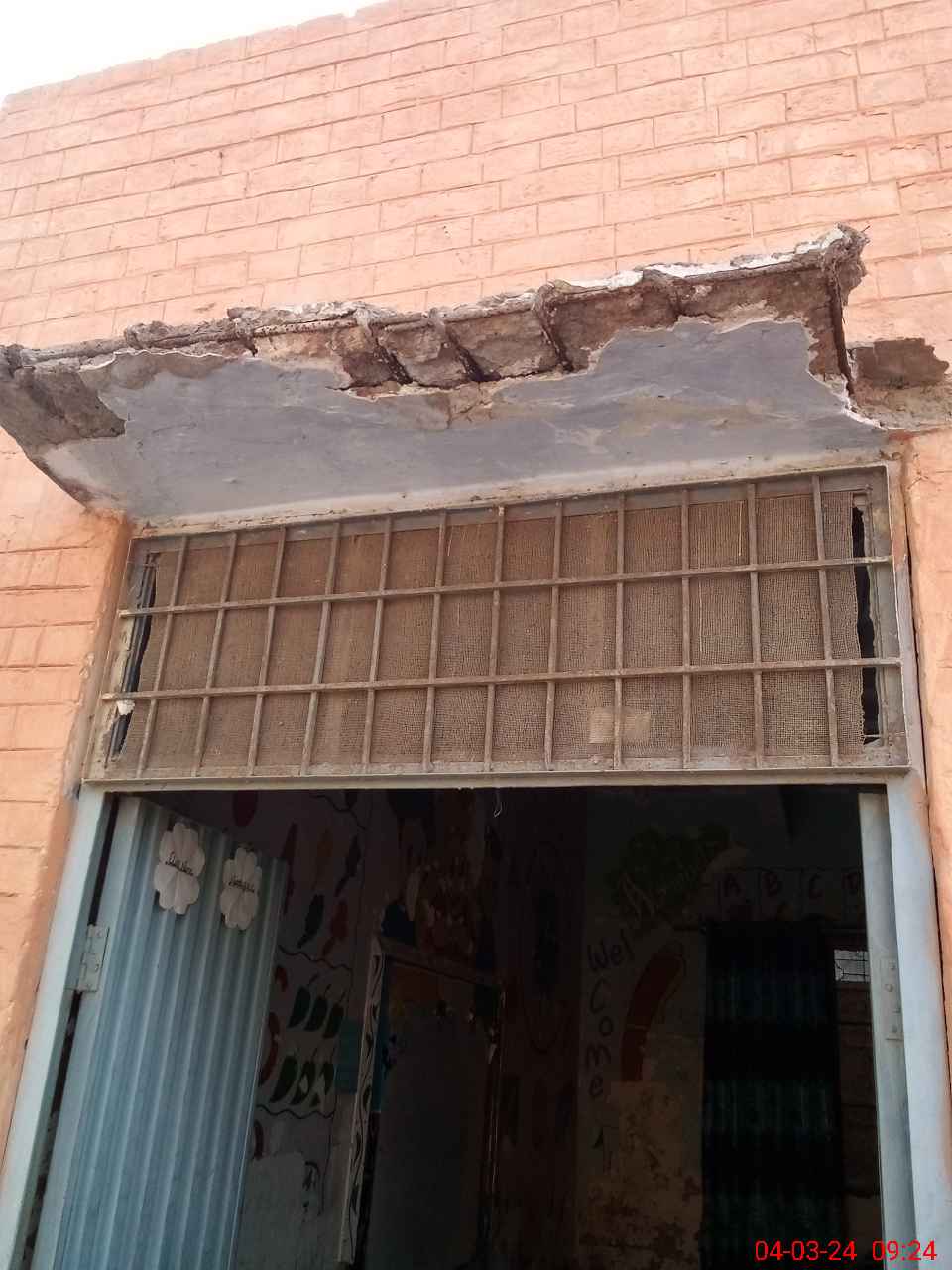 | Total no. of Classrooms: 3 No. of Classrooms Used for Teaching: 3 No. of Classrooms Storing Old Furniture, FTBs, etc: 0Comments if Any: Sun shed at door of ECE class is in dangerous condition repair needed at urgent basis |