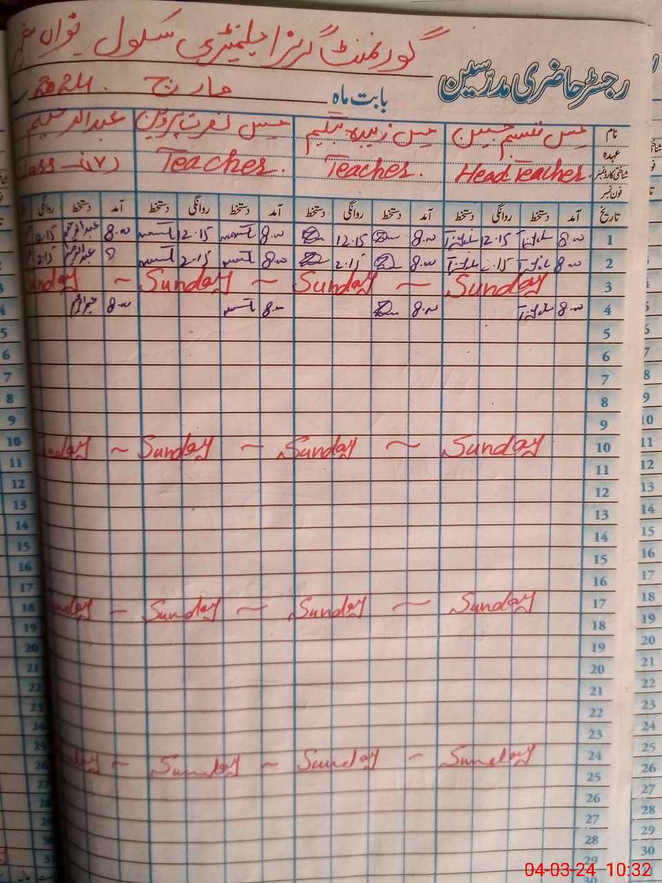 | Name: Kh**** Ha**** Designation: (School Headmaster's/Headmistress's) PST Phone/Cell Number: 03**** |